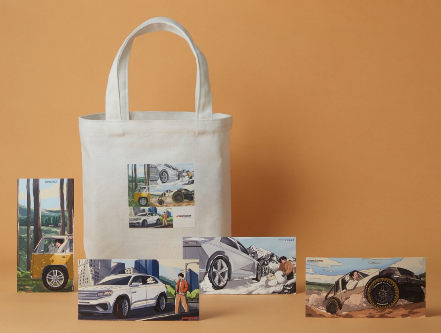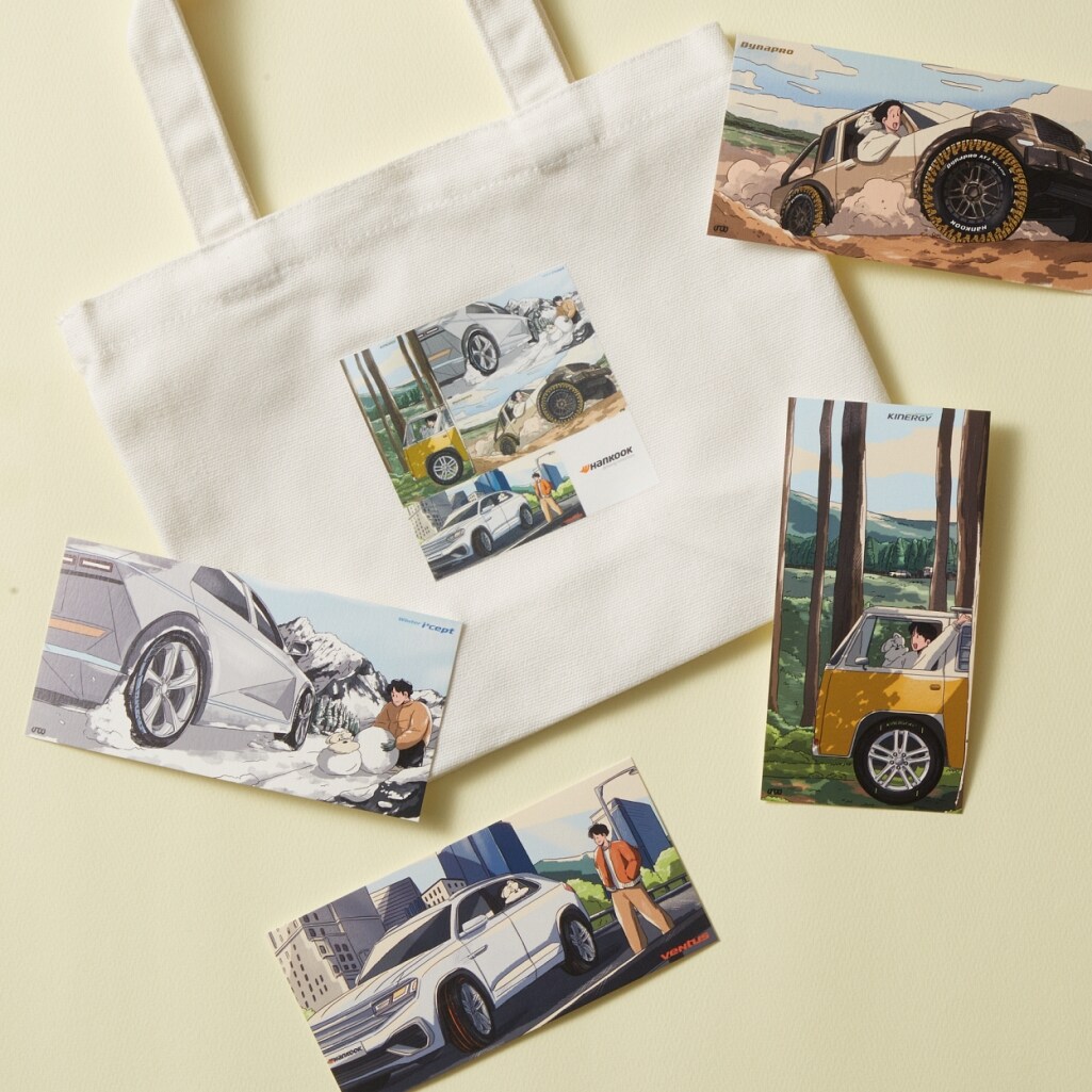 이번 콜라보는 한국타이어의 초고성능 프리미엄 타이어 ‘벤투스(Ventus)’, SUV 전용 타이어 ‘다이나프로(Dynapro)’, 스탠다드 타이어 ‘키너지(Kinergy)’, 겨울용 타이어 ‘윈터 아이셉트(Winter i*cept)’ 등 주요 상품 브랜드를 모티브로 한국타이어와 함께하는 따뜻한 일상을 표현한 것이 특징이다.